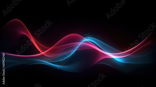 3d light wave with lights, in the style of dark sky-blue and crimson, speed and motion Illustration AI Generative.