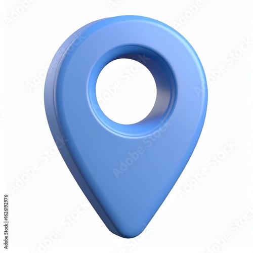 3D Location Pin Icon: Glossy light blue map pointer symbol isolated on a clean white background.