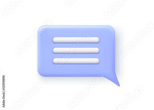 3D message icon, communication chat bubble with text, vector illustration in realistic design. Web comment, conversation or talk sign, information or sms button, mobile message