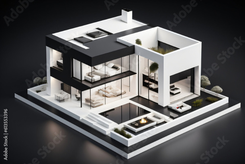 3D Miniature modern Luxury House on Black background