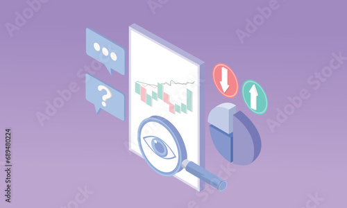 3d minimal Analytical Concepts Stock.on Pastel purple background. 3d graph stock vector icon for financial render illustration