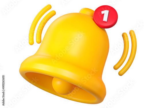 3d minimal turn-on notification concept. New update reminder. New notification alert. A bell icon ringing with a notification icon. 3d illustration.