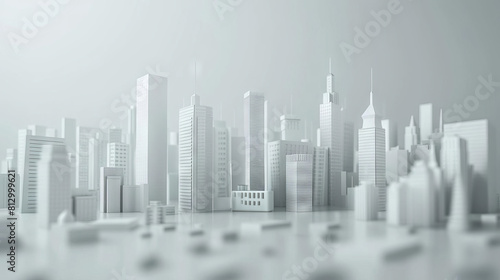 3D minimalist cityscape with NetZero emissions numberless clock, sleek design, monochrome palette
