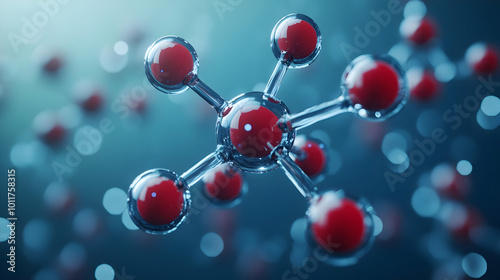 3D Molecular Structure Illustration - Red Atoms Connected by Bonds