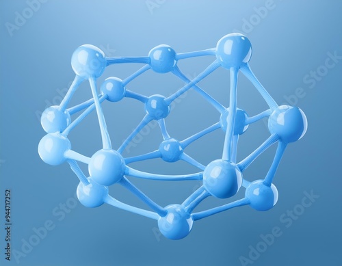 3D molecule model with blue spheres connected by lines, 3D Illustration