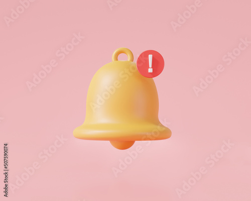 3d notification icon isolated on pink background. Social Media element, new message, alert or alarm, reminder notification. new notification concept. 3d rendering illustration, cartoon minimal style