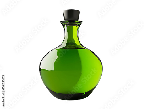 3D Of Green Glass Bottle with Liquid on Transparent Background