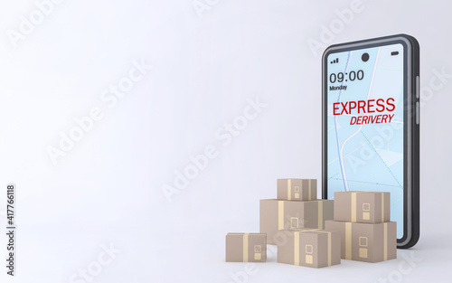 3D Online express delivery service concept, fast response delivery by scooter, courier Pickup, Delivery, Online Shipping Services. 3d Rendering.