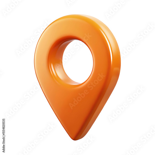 3d orange location pin icon isolated on transparent background.
