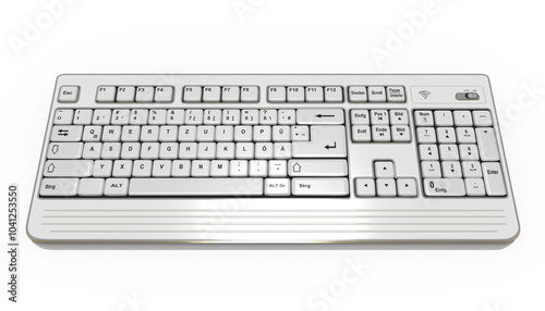 3d PC Tastatur, Keyboard weiß mit schwarzer Schrift, deutsche Tastatur, freigestellt mit transparenten Hintergrund