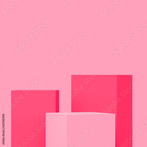 3d pink cubes square podium minimal studio background. Abstract 3d geometric shape object illustration render. Display for beauty cosmetic and valentine product.