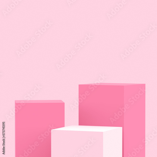 3d pink cubes square podium minimal studio background. Abstract 3d geometric shape object illustration render. Display for valentine product.
