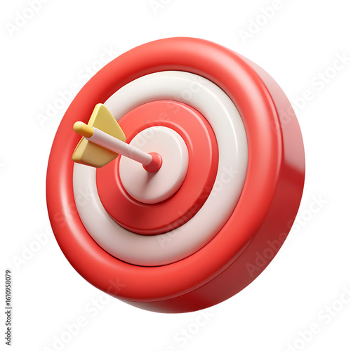 3D Plastic Target Icon with Arrow – Glossy Red & White Goal Achievement Symbol – Isolated PNG for Business, Productivity, UI/UX