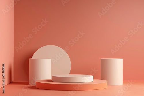 3D podium with minimalistic sleek design on a food tone colors background. Modern style