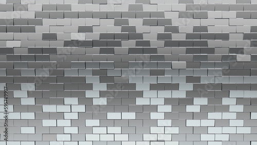 3D, Polished Wall background with tiles. Glossy, tile Wallpaper with Rectangular, Silver blocks. 3D Render