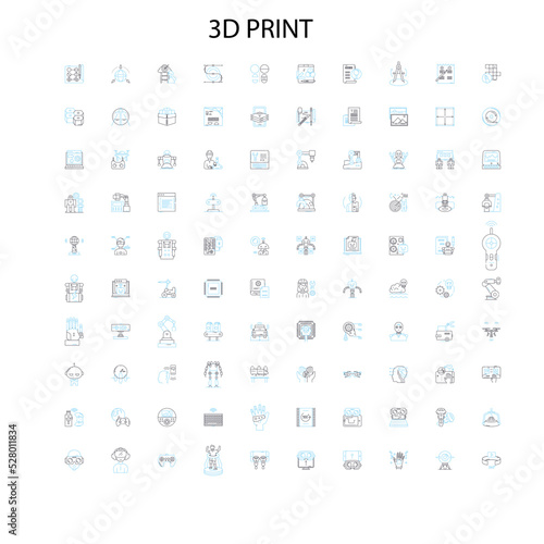 3d print icons, signs, outline symbols, concept linear illustration line collection