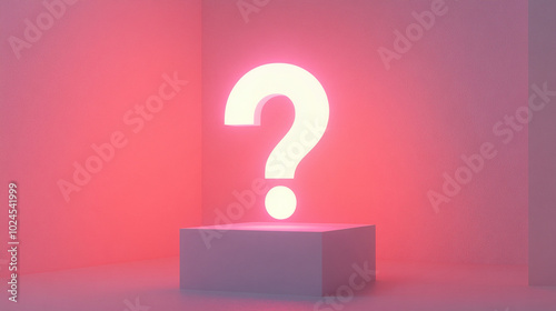 3d question mark with neon white lighting on red background warm atmosphere horizontal composition panorama scene faq presentation ask help audience time