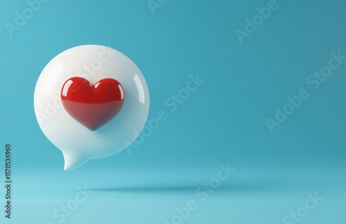 3D realistic white message bubble with a red heart on a blue background. love concept for a social media post or banner template design for Valentine's Day.