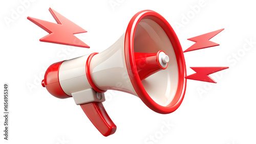 3D Red and png White Megaphone with Red Lightning Bolts on Transparent Background bullhorn announcement