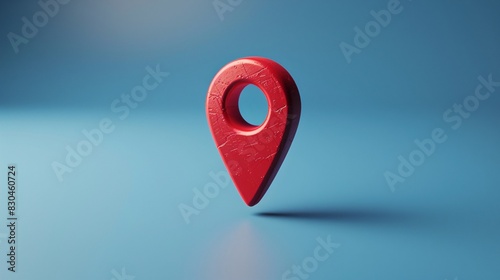 3D Red map marker pin with a hole on a blue background, representing location, navigation, and direction concepts.