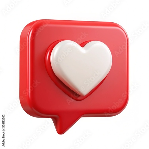 3D red speech bubble with white heart icon