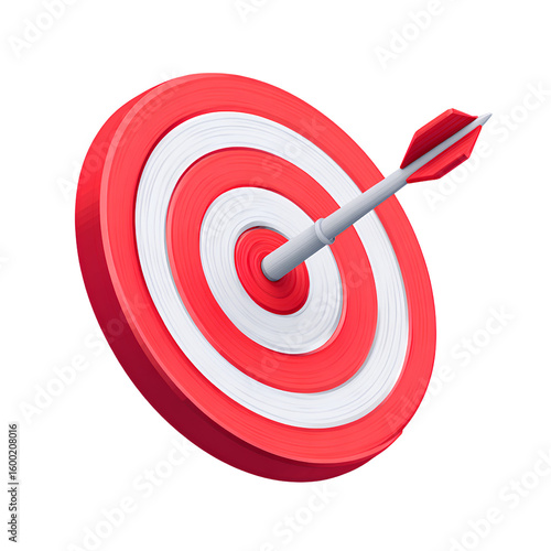 3D red target with an arrow hitting the bullseye icon on a transparent