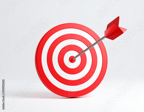 3D Red Target with Arrow – Goal Setting, Accuracy, and Success Concept in Business or Strategy