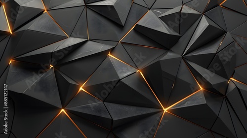 3d render, abstract black crystal background with gold line, faceted texture, macro panorama, wide panoramic polygonal wallpaper
