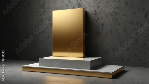 3d render abstract platforms with golden part. Realistic mock up for promotion, banners background, product show.