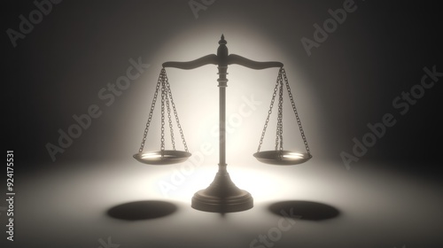 3D Render: Balanced Courtroom Scale with Glowing Edges on White Background