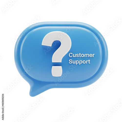 3D Render: Blue Speech Bubble, Question Mark, Customer Support Icon