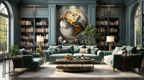 3D Render Creating a Idea Beautiful Living Room Background, Design Ideas decorate with Vintage Classic Style for Resident's Relaxation Luxury