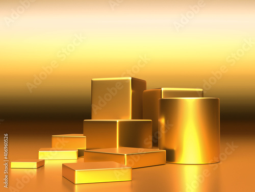 3d render, digital illustration. Modern minimal Gold color background. Abstract geometric design. Fashion concept. Podium for brand promotion product