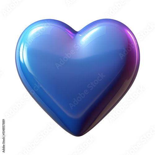 3d render, glossy heart shaped object, shiny iridescent blue purple gradient color, realistic lighting, high resolution, detailed, octane render