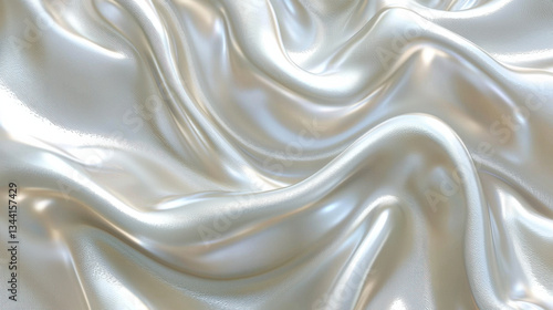 3D render metallic fluid Smooth ivory fabric with glossy, flowing texture creating elegant abstract background background