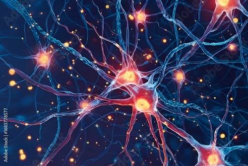 3D render of a close-up view showing the intricate network and structure of the human nervous system