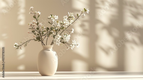 3D render of a delicate flower vase with pastel blooms, set against a pale background, capturing soft and serene tones
