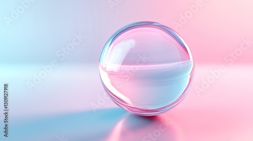 3D render of a glass sphere on a gradient background. Pink and blue colors.
