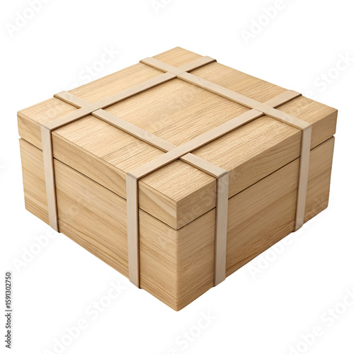 3D render of a matte wooden gift box with elegant structure on transparent background