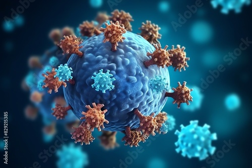 3D render of a medical with virus cells bacteria. Multiple realistic coronavirus particles floating