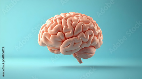 3D Render of a Peach Colored Human Brain on a Light Blue Background