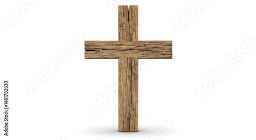 3D Render of a Rustic Wooden Cross on White Background Illustration