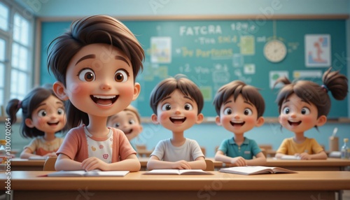 3d render of a smile childrens in class room,education concept,3d cartoon