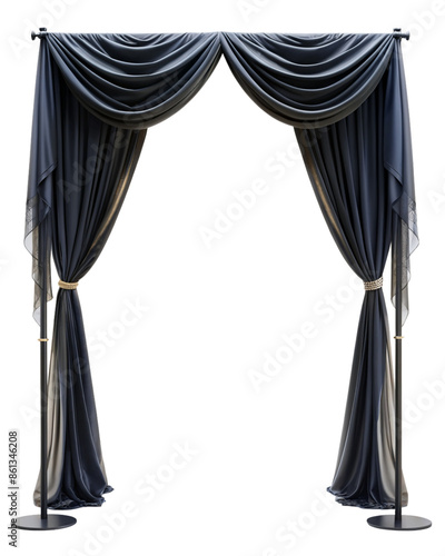 3D render of a wedding stage curtain in the style of dark grey color, isolated on a white background