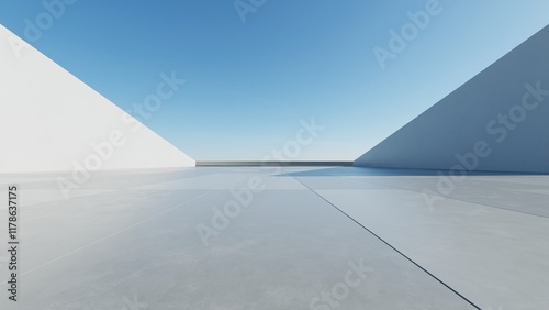 3d render of abstract modern architecture with empty cement floor, minimal exterior, car presentation background