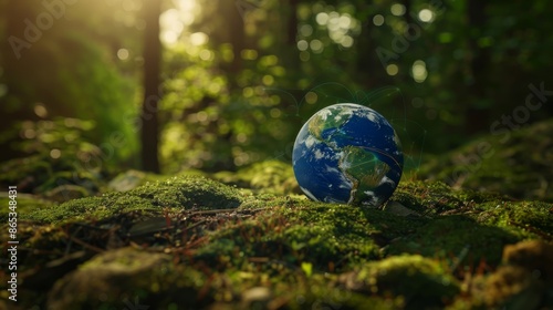 3D Render of an Earth Plexus Design with a Moss Forrest Background