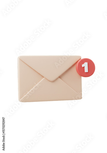 3D Render of Beige Envelope with New Mail Notification Number One
