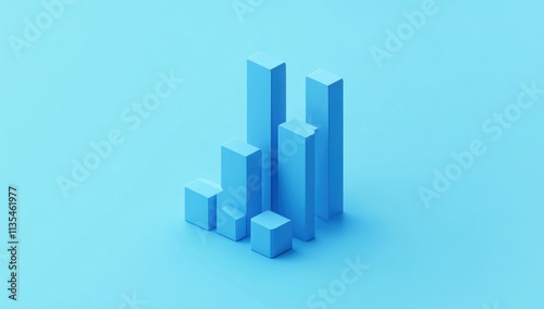 3D render of blue bar graph showing growth.