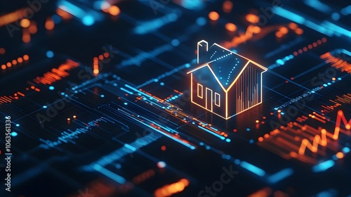 3D Render of Chart Comparing Property Loan Interest Rates with House Icon on Screen
