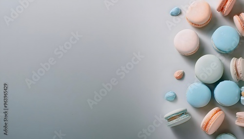 3d render of multi-colored macarons on a white background.